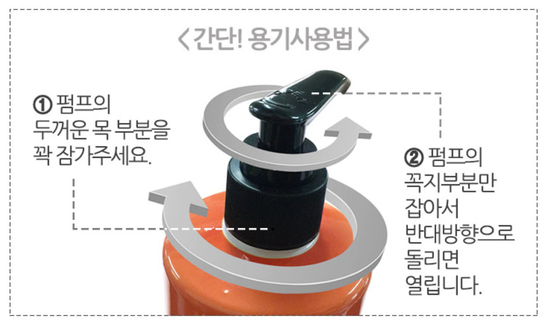2번으로 펌프의 꼭지 부분만 잡아서 시계반대방향으로 돌리면 뽁하면서 열립니다
